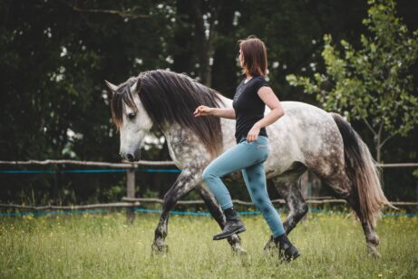 More than riding itself, she focuses on communication with horses — including communication on a spiritual level. She works with energy and energy therapies, mindfulness, education of riders and horse lovers.