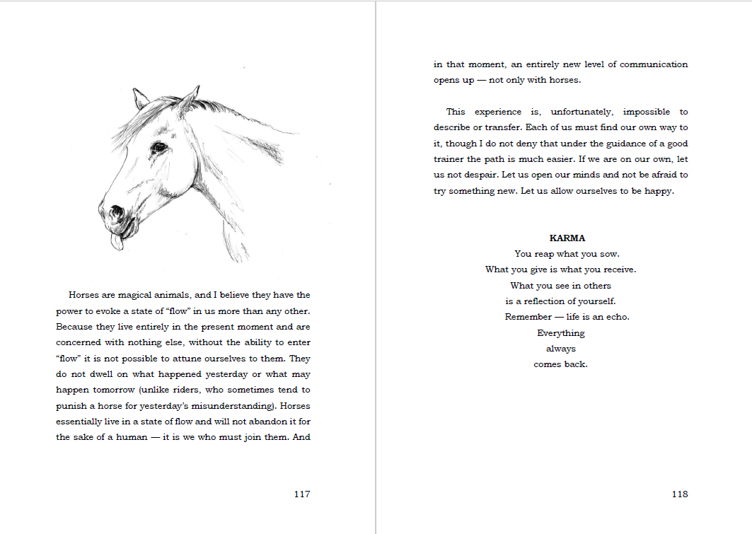 This book was created after years of working with horses of different temperaments and histories, and it is based on the author’s personal experiences on the journey from an uncertain rider to a confident partner for her horses.
